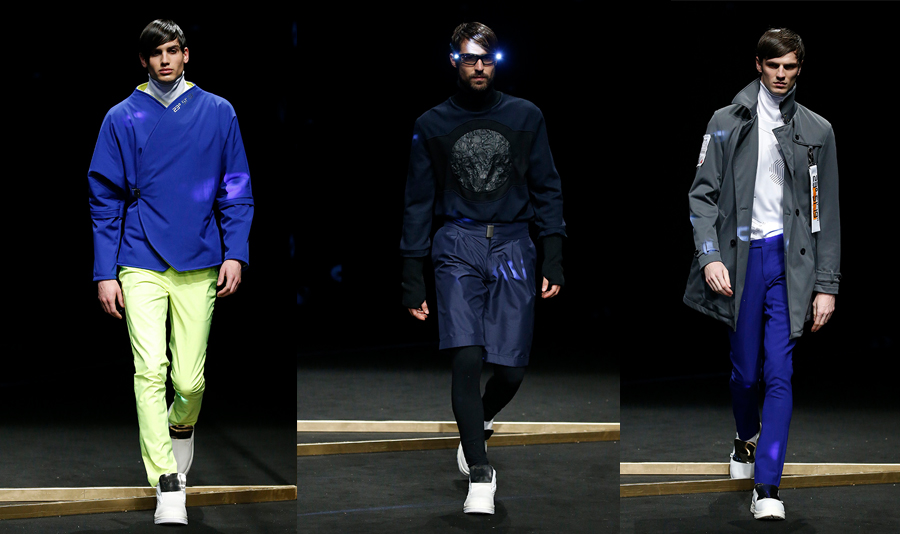 23º 51' 19''. La inclinación con la que los rayos de sol inciden sobre la tierra en invierno es la premisa de la última colección del valenciano Miquel Suay. Si ya en Julio nos adelantaba una colección futurista inspirada en Zaha Hadid, en esta ocasión va un paso más allá para presentar unas prendas sacadas del espacio. Abrigos de tejidos técnicos, con cremalleras, broches y parches en el exterior. Pantalones de talle alto y poco ajustados con maxibolsillos y tejidos acolchados. En cuanto a la paleta de colores, un sinfín de grises, azules y dorados dan un toque tecnológico y vanguardista para este astronauta cosmopolita.